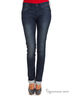 Детали: отрезной пояс со шлевками для ремня, застежка на пуговицу и молнию, два прорезных кармана спереди, два накладных сзади, зауженные брючины с отворотами, модель декорирована потертостями.