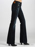 Стильные женские джинсы. Плотная ткань, пять карманов. Расклешенный силуэт джинс. Застежка на молнию и пуговицы. К поясу пришиты шлевки для ремня.