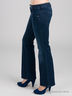 Стильные женские джинсы. Плотная ткань, пять карманов. Расклешенный силуэт джинс. Застежка на пуговицы. К поясу пришиты шлевки для ремня. Изделие украшено декоративными потертостями.
