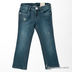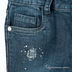 Зауженная модель застегивается на молнию и пуговицу. К поясу пришиты петли для ремня. Три передних кармана, два задних кармана. Декоративные элементы: потертости, стразы.