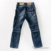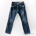 Брюки для мальчика синего цвета. Выполнены из плотной хлопковой ткани джинс. Модель интересна своим сложным кроем и декоративной отстрочкой. Окрас с искусственными потертостями и складками (эффект крэш). Застегиваются на молнию , пояс на пуговицу. Карманы закреплены металлическими клепками.