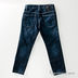 Брюки для мальчика синего цвета. Выполнены из плотной хлопковой ткани джинс. Классическая 5-карманная модель, прямого кроя. Окрас с искусственными потертостями и складками (эффект крэш). Застегиваются на молнию , пояс на пуговицу. Карманы закреплены металлическими клепками.