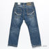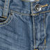 Детали: в пояс вставлена регулирующаяся резинка, застежка на пуговицу и молнию, к поясу пришиты шлевки, три передних кармана, четыре задних кармана, эффект потертости