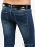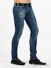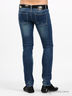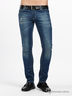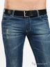 Превосходные джинсы прямого покроя, немного зауженные к низу, с застежкой на пуговицы. Спереди расположены два втачных кармана, сзади – два накладных. Предусмотрены шлевки для ремня. Декорированы стильным эффектом потертости.