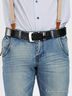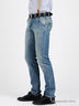 Детали: втачной пояс и шлевки для ремня, застежка на молнии и на пуговице, два прорезных кармашка брючного пошива и два прорезных кармашка внутри, один на молнии, два накладных кармашка сзади, джинсы вытерты, оригинальный джинсовый пояс в комплекте.