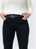 Практичные угольно-черные джинсы с ремнем в комплекте.