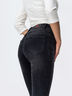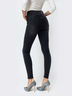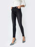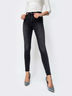 Графитово-черные джинсы-скинни с высокой посадкой, дополнены россыпью страз в тон изделию.