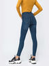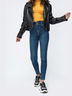 Зауженные джинсы с высокой посадкой и декоративными патами на поясе. Застегиваются на две пуговицы.
