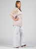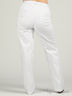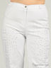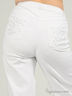 Легкие джинсы прямого покроя. Отрезной пояс по бокам с резинками. Есть шлевки для ремня. Спереди имитация втачных карманов, сзади два накладных. Декорированы стразами и вышивкой.