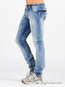 Джинсы из приятного к телу хлопка, удачно дополнят Ваш образ и сделают отдых комфортней. Джинсы прямого кроя. Отрезной пояс со шлевками. Два втачных кармана спереди, два накладных сзади. Застежка - молния и пуговица. Джинсы искусственно состарены и декорированы по бокам ремешками.