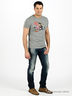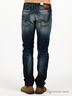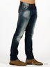 Детали: Вытертые джинсы с эффектом запачканности. Множество карманов. Сзади двойные карманы. Втачной пояс со шлевками для ремня. Застежка на пуговице и на молнии.