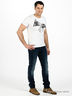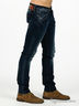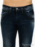 Детали: девять карманов. Втачной пояс со шлевками под ремень. Вытертые, застежка на пуговице и на молнии.