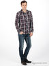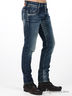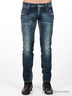 Детали: пять карманов, джинсы вытерты с эффектом рваности, застежка на металлической молнии и на пуговице, втачной пояс и шлевки под ремень, пояс сзади декорирован нашивкой с логотипом бренда, брючины заужены к низу.