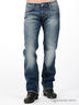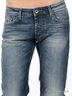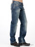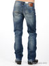 Детали: пять карманов, втачной пояс и шлевки под ремень, застежка на металлических пуговицах, джинсы вытерты, талия занижена, брючины прямые по всей длине, сзади на поясе нашивка с логотипом бренда.