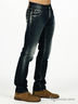 Детали: втачной пояс со шлевки для ремня. Застежка на пуговице. Джинсы вытертые. Пять карманов.