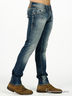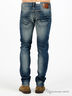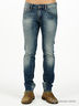 Детали: вытертые джинсы. Втачной пояс со шлевками под ремень. Застежка на пуговице и на молнии. Пять карманов.