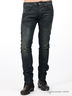 Детали: пять карманов, брючины заужены к низу, джинсы вытерты, втачной пояс с шлевками под ремень, пояс декорирован нашивкой с логотипом бренда Energie с металлической цепочкой, застежка на молнии и на пуговице.