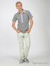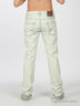 Джинсы мужские прямого кроя. Классические пять карманов. Отрезной пояс со шлевками для ремня. Застежка на пуговицы. Декоративные потертости и дырки.