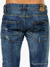 Классические мужские джинсы прямого покроя с эффектом потертости. Отрезной пояс, есть шлевки для ремня. Застегиваются на молнию и пуговицу. Пять карманов.