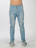 Джинсы с заниженном шагом. Пять карманов. Отрезной пояс со шлевками для ремня. Застежка на молнию и пуговицу. Анатомический крой колен. Заужены к низу.