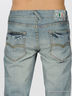 Джинсы мужские прямого кроя. Классические пять карманов. Отрезной пояс со шлевками для ремня. Застежка на пуговицы.