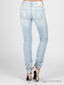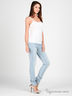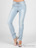 Детали: застежка на молнию и пуговицу, четыре кармана, втачной пояс со шлевками для ремня, эффект потертости