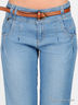 Детали: застежка на молнию и на две пуговицы, в шлевки продет ремень, четыре кармана, низ изделия присборен на кулиску с лентой