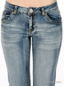 Детали: застежка на молнию и пуговицу, пришиты шлевки, три передних кармана, два задних кармана, эффект потертости, декоративная вышивка на задних карманах
