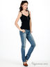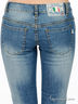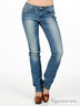 Детали: застежка на молнию и пуговицу, пришиты шлевки, три передних кармана, два задних кармана, эффект потертости