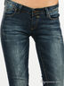 Женские джинсы прямого покроя. Отрезной пояс, есть шлевки для ремня. Застегиваются на молнию и пуговицу. Пять карманов. Декорированы контрастной прострочкой.