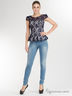 Стильные джинсы зауженного кроя с застежкой на молнию и пуговицу спереди. Модель дополнена втачными карманами по бокам, на поясе - шлевки для ремня. Отличный вариант на каждый день.