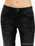 Детали: отрезной пояс со шлевками, треугольная кокетка, застегивается на металлическую молнию и пуговицы, 5 карманов, украшены стразами