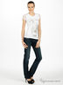 Детали: отрезной пояс со шлевками, треугольная кокетка, застегивается на металлическую молнию и пуговицу, 5 карманов, украшены стразами и клепками
