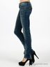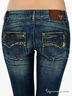 Детали: отрезной пояс со шлевками, прямоугольная кокетка, застегивается на металлическую молнию и пуговицу, 5 карманов, украшены стразами и кнопками