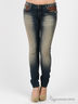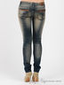 Детали: отрезной пояс со шлевками для ремня, два прорезных спереди, два накладных кармана сзади. Внутренняя часть карманов со вставками из букле. Зауженные брючины. Модель декорирована стразами.