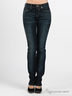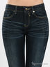 Женские джинсы "скинни" темно-синего цвета из денима с эффектом потертости. Отрезной пояс. Есть шлевки для ремня. Застегиваются на молнию и пуговицу. Пять карманов. Декорированы контрастной прострочкой.