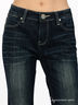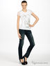 Детали: отрезной пояс со шлевками, треугольная кокетка, застегивается на металлическую молнию и пуговицы, 5 карманов, украшены стразами