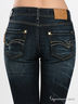 Женские джинсы "скинни" темно-синего цвета из денима с эффектом потертости. Отрезной пояс. Есть шлевки для ремня. Застегиваются на молнию и пуговицу. Пять карманов. Декорированы контрастной прострочкой.