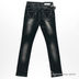 Детали: застежка на пуговицу и молнию, к поясу пришиты шлевки, три передних кармана, два задних кармана, отстегивающиеся декоративные бусы с брошками, эффект потертости