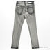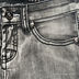 Детали: застежка на пуговицу и молнию, к поясу пришиты шлевки, три передних кармана, два задних кармана, брючины украшены декоративными элементами, эффект потертости