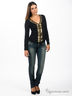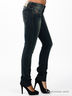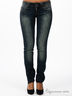 Детали: классический крой с пятью карманами; отрезной пояс со шлевками для ремня; застежка на молнии