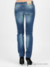 Классические джинсы из плотного, слабоэластичного денима. Отрезной пояс со шлевками для ремня. Застежка на пуговицу и молнию. Спереди два прорезных кармана и один накладной, сзади - два накладных. Длинные слегка зауженные брючины. Универсальная модель, отлично будет сочетаться с разными по фасону и фактуре вещами.