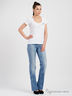 Стильные джинсы удобного кроя "клеш" - всегда актуальный вариант для современной женщины. Изделие в приятной расцветке, застегивается на молнию и пуговицу. На талии представлены шлевки для ремня.