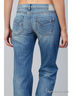 Джинсы расклешенного кроя с эффектом потертости. Накладные и втачные карманы. Застежка на молнию и пуговицу.
