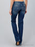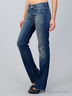 Джинсы расклешенного кроя с эффектом потертости. Накладные и втачные карманы. Застежка на молнию и пуговицу.