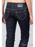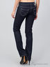 Джинсы прямого кроя с накладными карманами сзади и втачными спереди. Застежка на молнию и пуговицу.