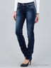 Джинсы прямого кроя с эффектом потертости. Накладные и втачные карманы. Застежка на молнию и пуговицу.