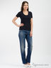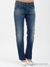 Стильные джинсы прямого покроя с застежкой на молнию и пуговицу. Спереди два втачных кармана, сзади два накладных. Модель дополнена шлевками для ремня и декоративными потертостями. Отличный вариант на каждый день.