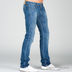 Стильные классические джинсы. Плотная ткань, пять карманов. Силуэт джинс прямой. Искусственные потертости, замятости, застежка на молнию и пуговицу.