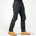 Оригинальные джинсы темно-серого цвета в полоску. Спереди два везных кармана побокам, два кармана с клапаном сзади, оригинальная застежка-молния и две пуговицы.